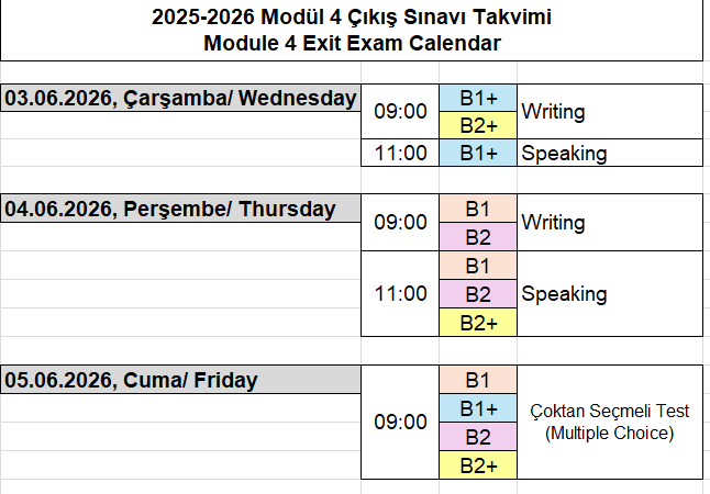 Not: Yabancı Diller Yüksekokulu sınav oturumlarının tarih ve saatlerinde değişiklik yapma hakkını saklı tutar.